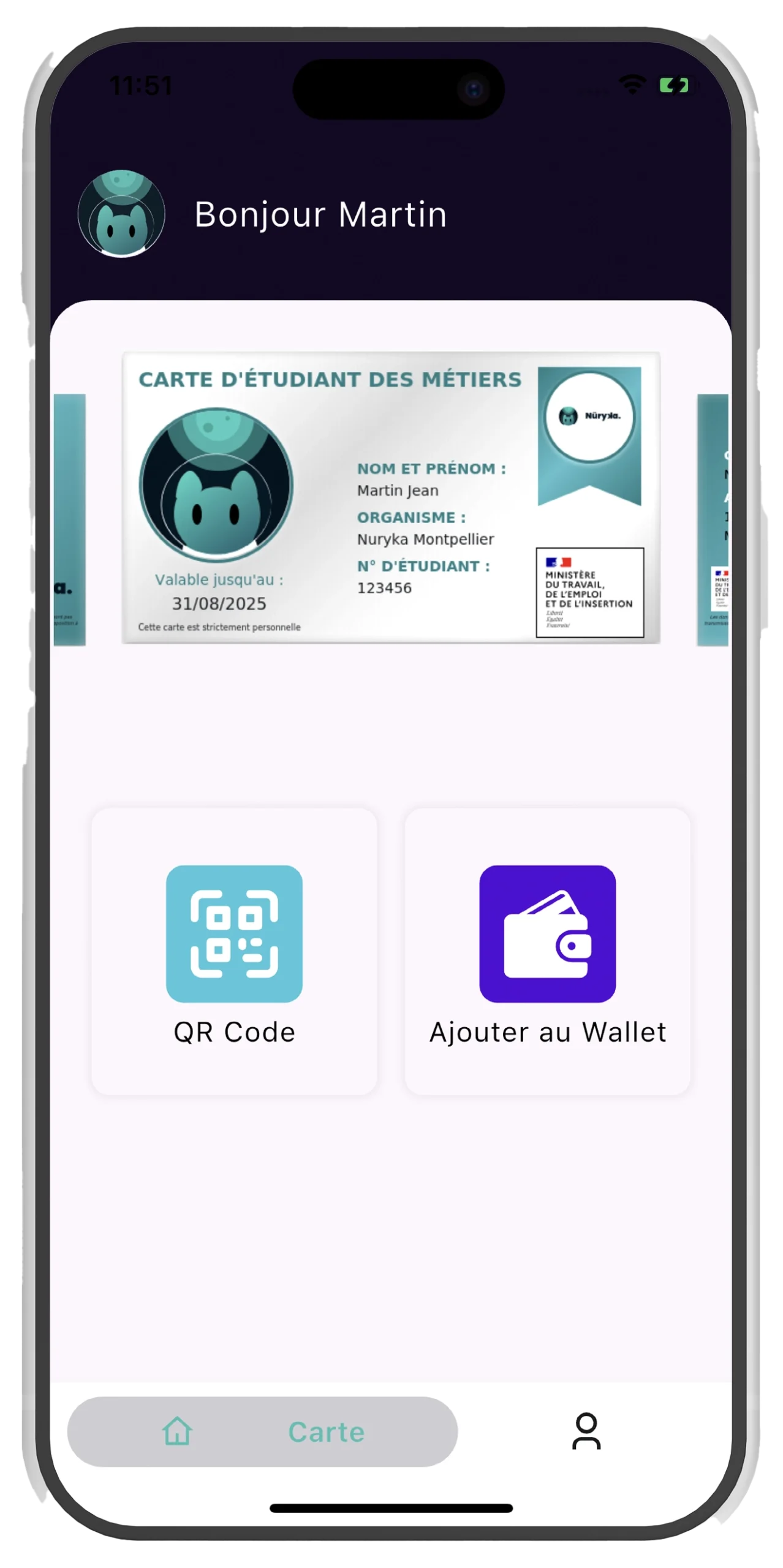 Via une application mobile dédiée ou un lien sécurisé. La carte s’affiche instantanément sur leur smartphone, même hors connexion, avec toutes les informations nécessaires.